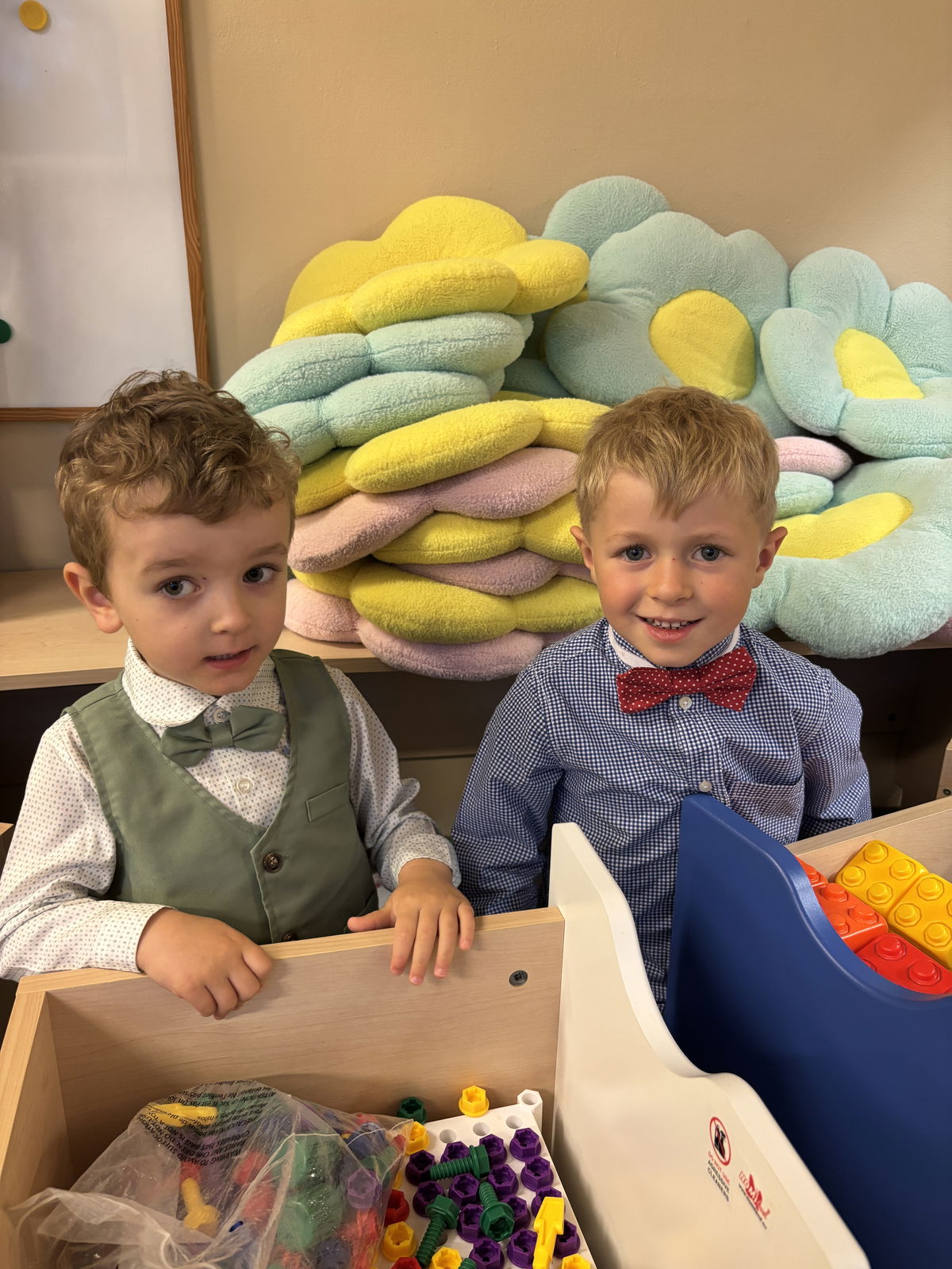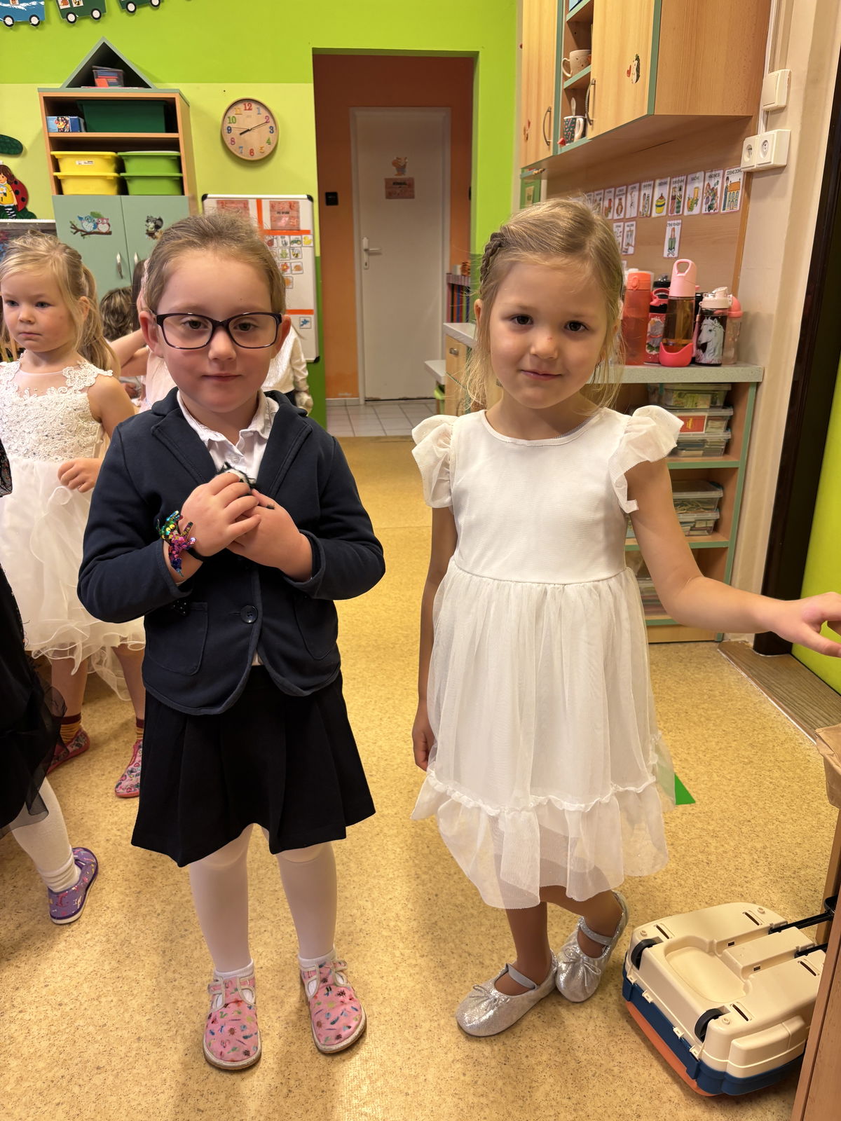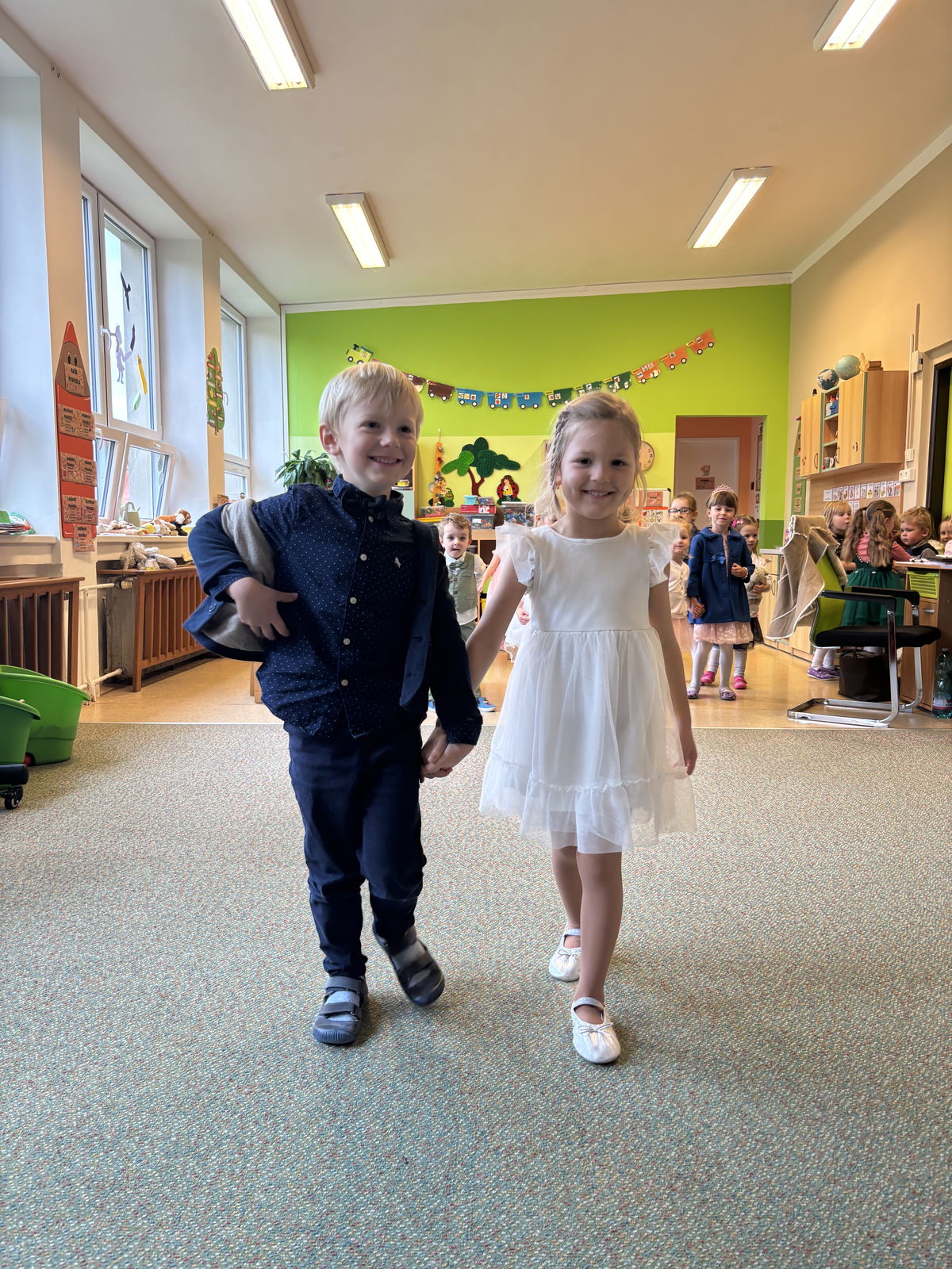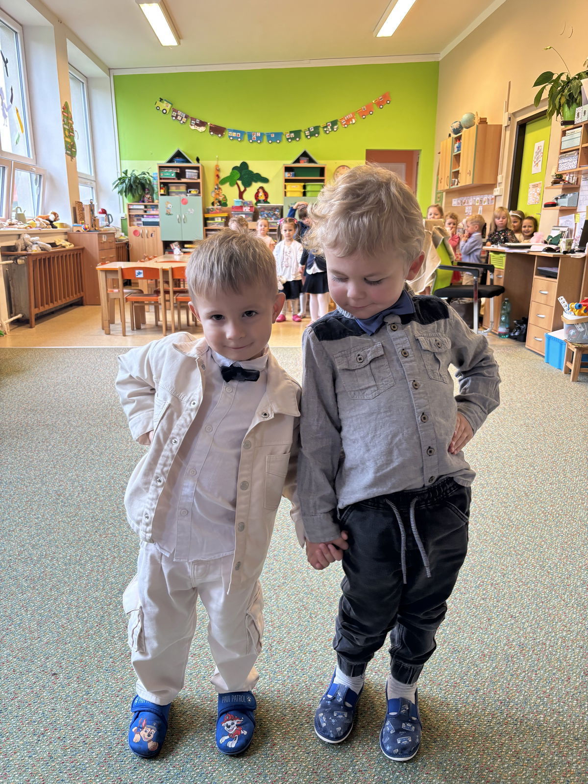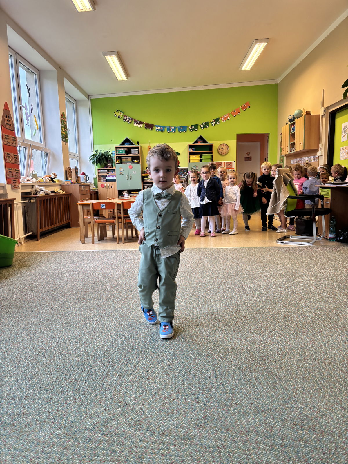 V pondělí 13.10.2025 jsme si v naší školce užili originální Suit Up Day - den, kdy se děti i paní učitelky proměnili v elegantní dámy a gentlemany!