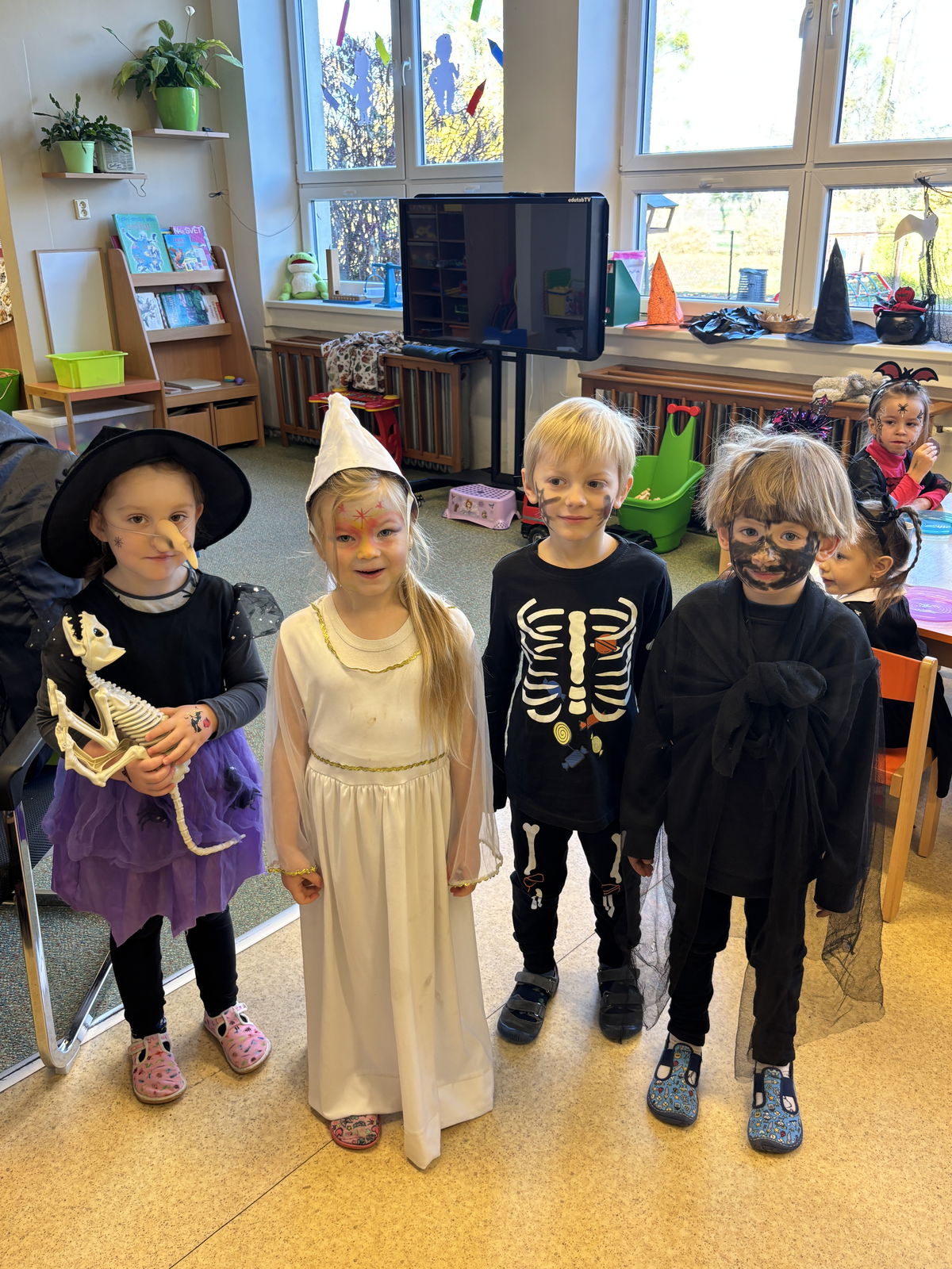 V pátek 31.10.2025 se naše školka proměnila v Strašidelnou třídu. Po chodbách se procházeli malí duchové, čarodějnice, kostlivci i netopýři. Děti si připravily krásné a originální kostýmy, za které si zaslouží velkou pochvalu.