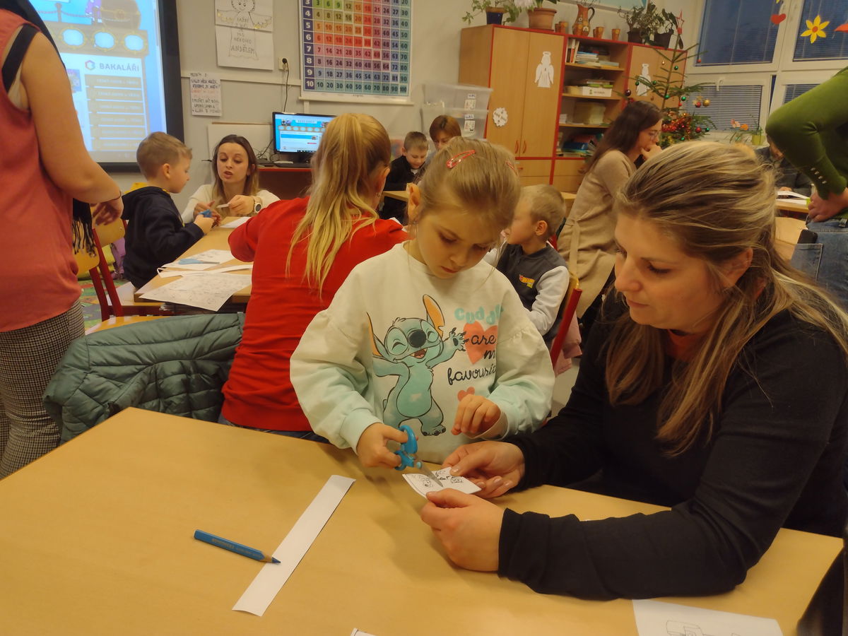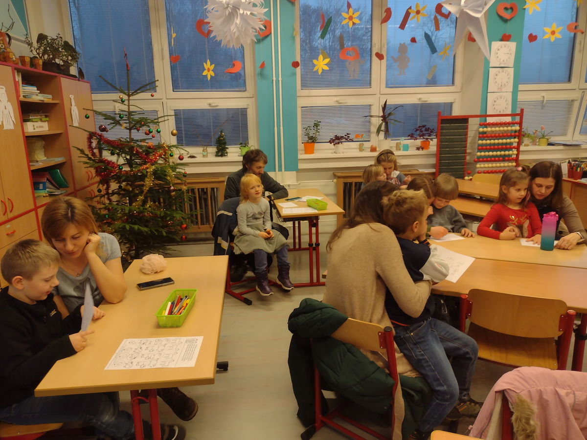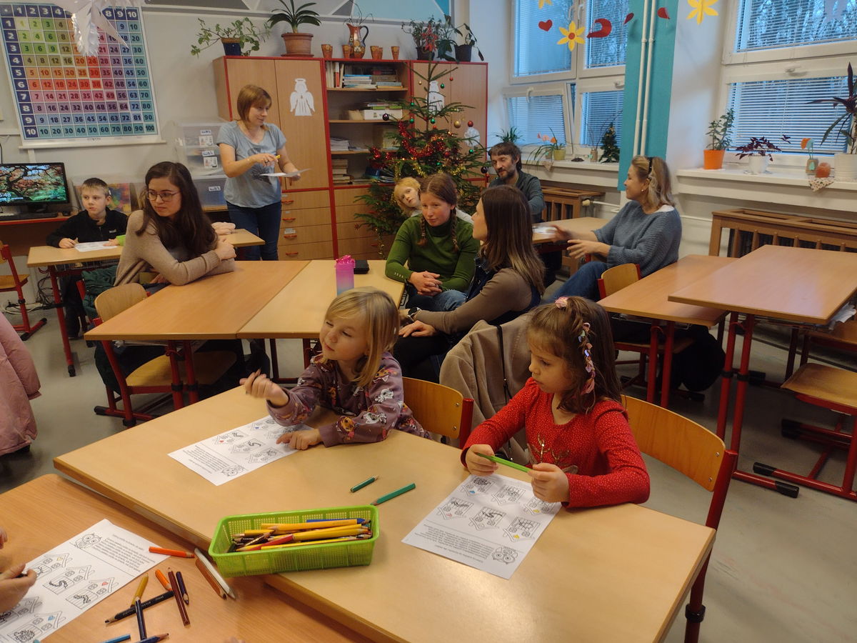 V předvánočním čase proběhlo ve čtvrtek 11. 12. odpoledne ve 2. třídě setkání rodičů a jejich dětí z řad předškoláků, jehož cílem bylo přiblížit způsoby rozvoje čtenářských a jazykových dovedností v předškolním období a ukázat, jak lze děti přirozeně a hravou formou připravovat na vstup do školy.