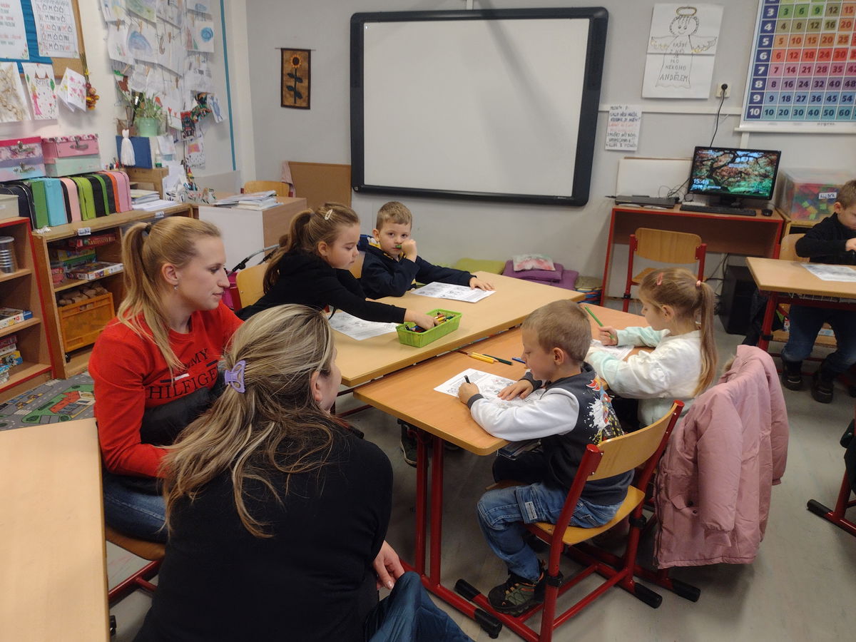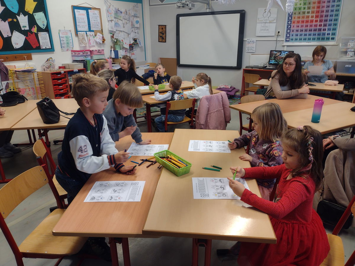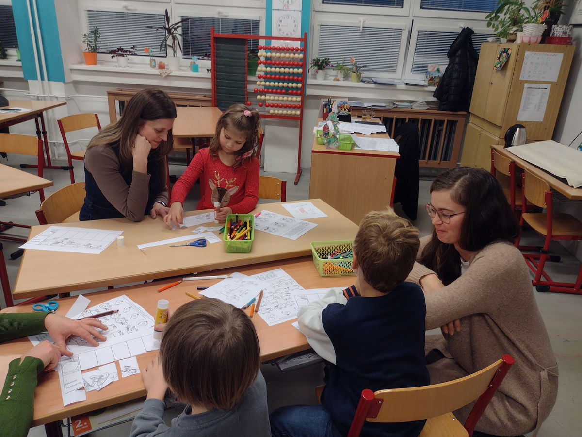 V předvánočním čase proběhlo ve čtvrtek 11. 12. odpoledne ve 2. třídě setkání rodičů a jejich dětí z řad předškoláků, jehož cílem bylo přiblížit způsoby rozvoje čtenářských a jazykových dovedností v předškolním období a ukázat, jak lze děti přirozeně a hravou formou připravovat na vstup do školy.