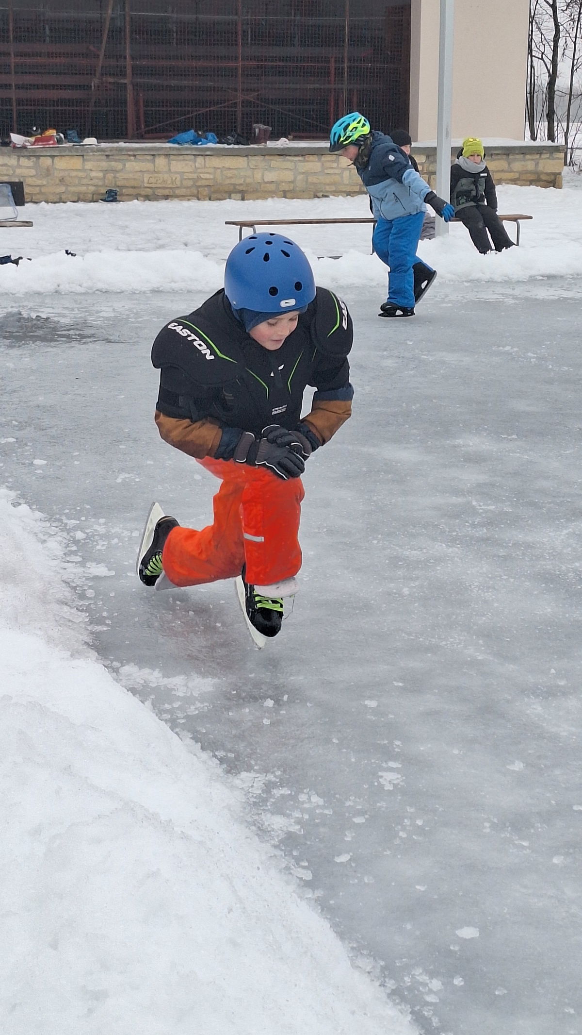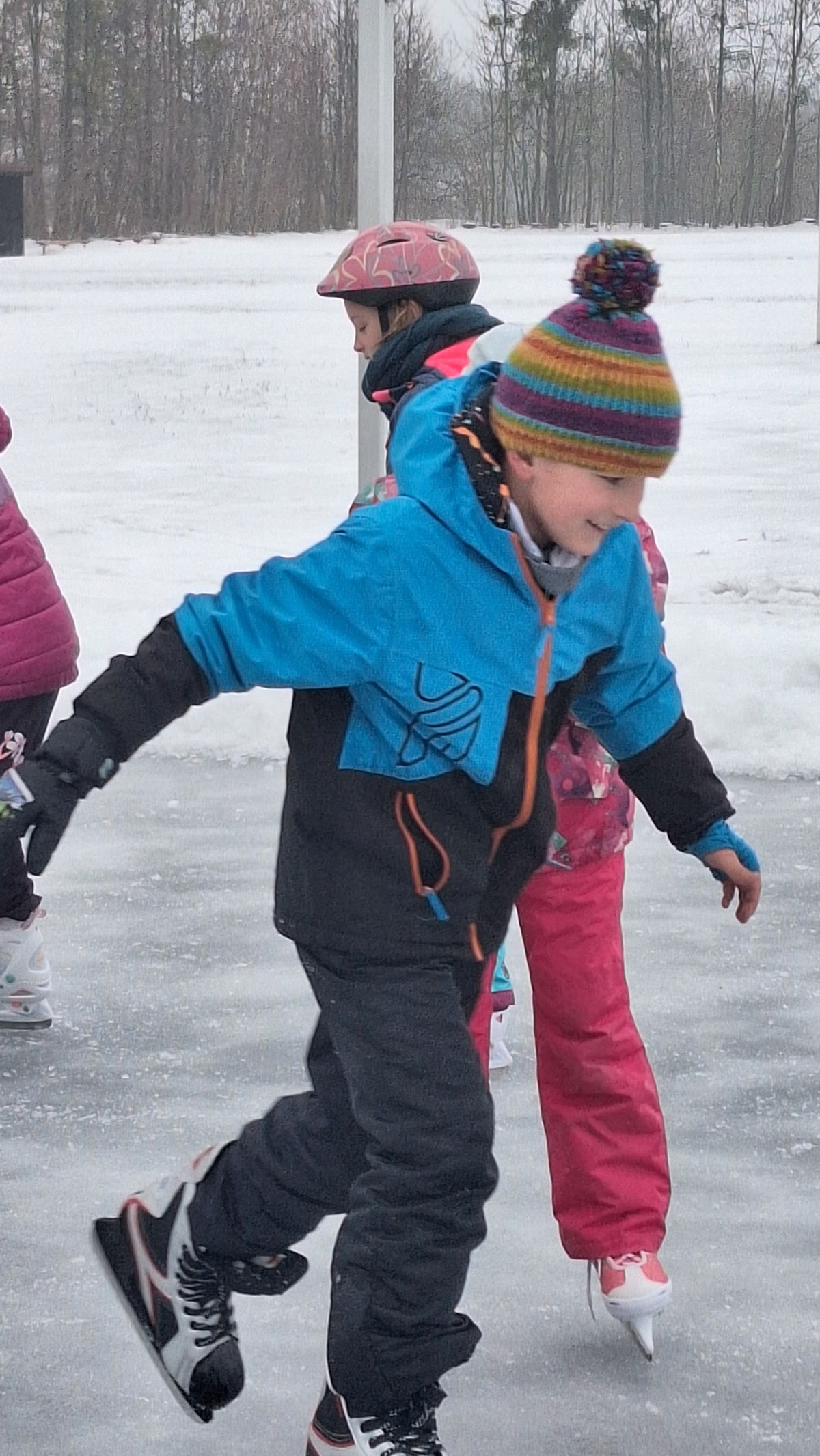 Žáci 3. ročníku se zúčastnili svého prvního bruslení na školním kluzišti za budovou školy. Přestože během dopoledne mírně pršelo a povětrnostní podmínky nebyly zcela ideální, žáci projevovali velký zájem a nadšení. Většina z nich se rychle a aktivně zapojila do pohybových her na ledě. Někteří chlapci si přinesli hokejky, díky nimž si vyzkoušeli i jednoduché hokejové dovednosti. Bruslení proběhlo v příjemné atmosféře. Pokud nám bude počasí přát, tuto aktivitu si rádi zopakujeme. Žáci se do školy vrátili sice mokří, ale spokojení. Děkujeme všem rodičům za spolupráci a také našemu panu školníkovi, který se o led stará.