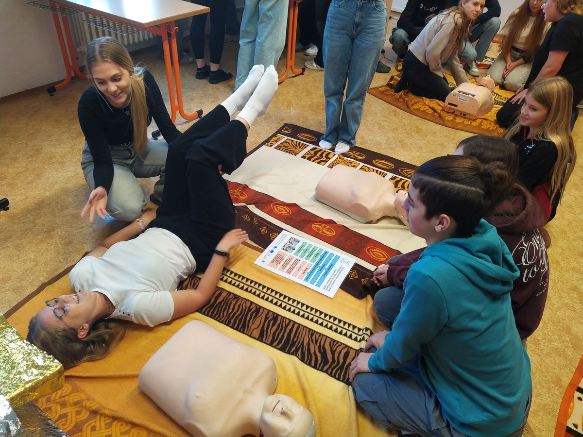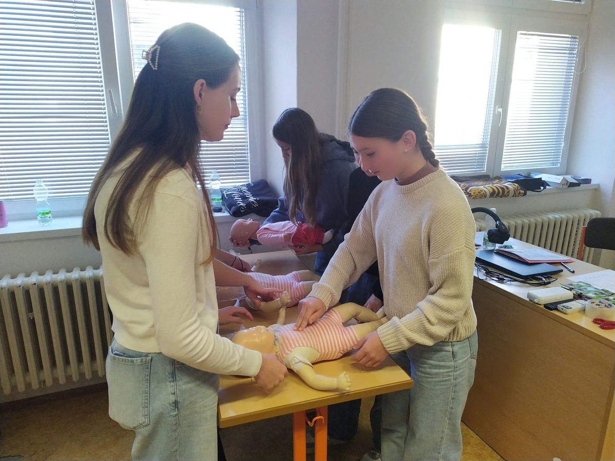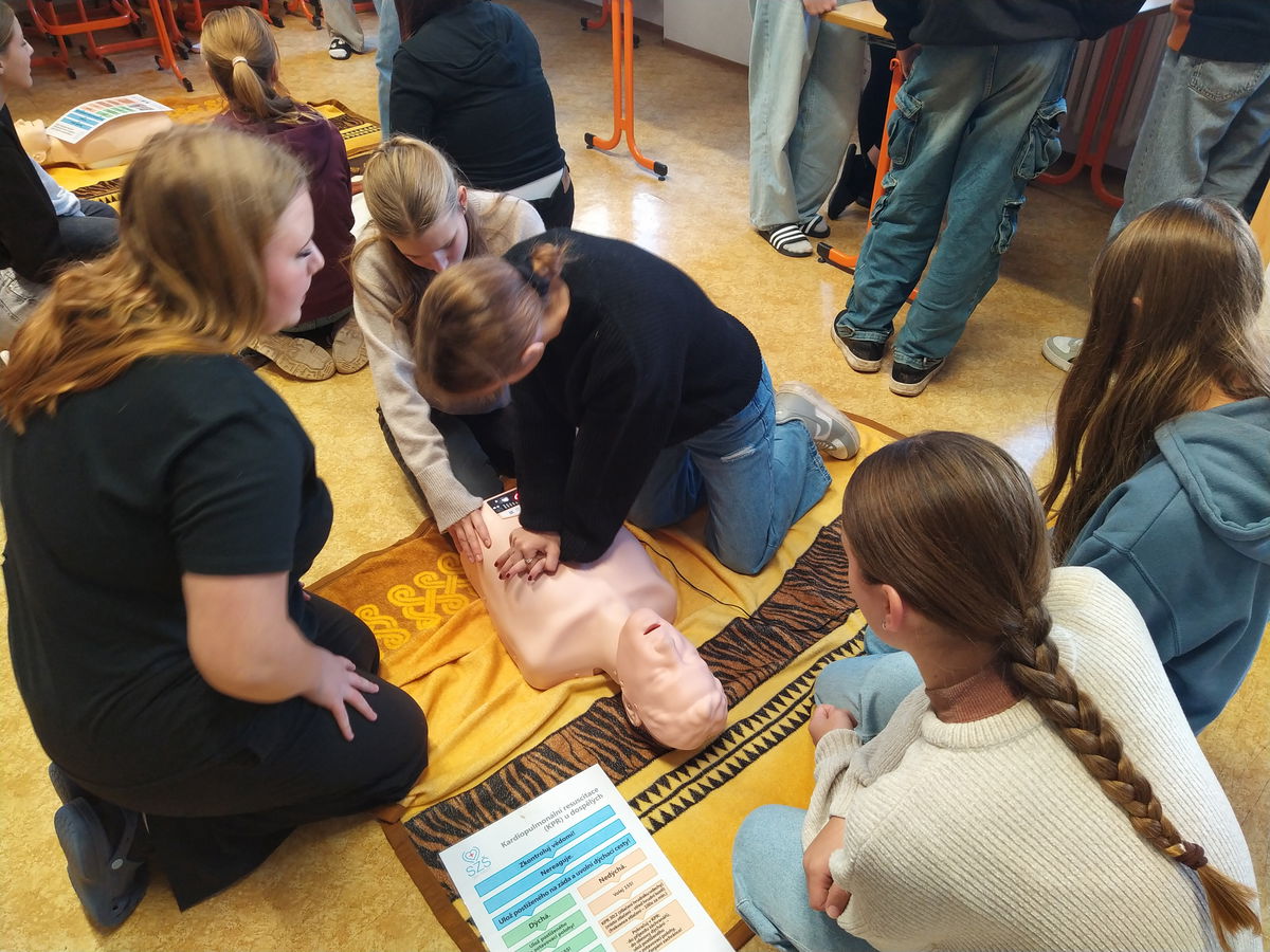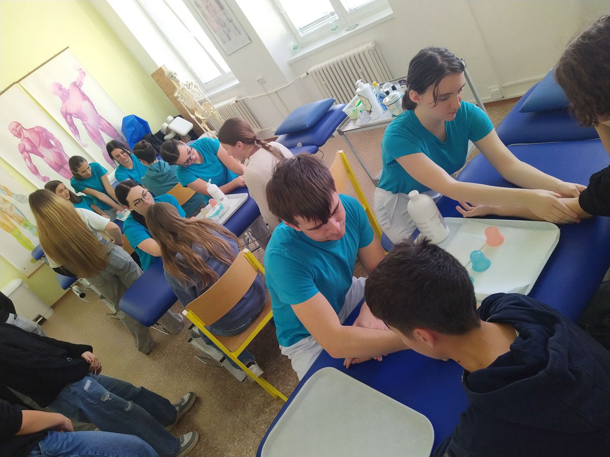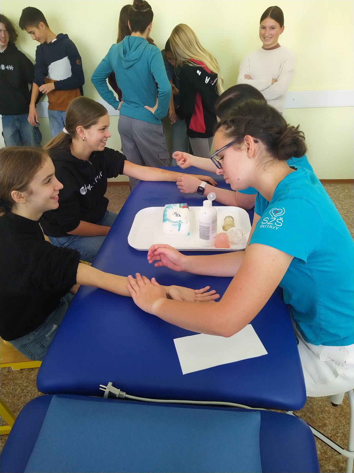 Ve škole byl připravený bohatý program, kde si mohly vyzkoušet např. nácvik resuscitace, poznat lidské tělo nebo práci maséra. V další části programu jsme navštívily svitavskou nemocnici, kde žáci určovaly krevní skupinu a podívaly jsme se i do zákoutí záchranářů a sanitky.