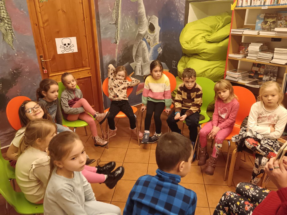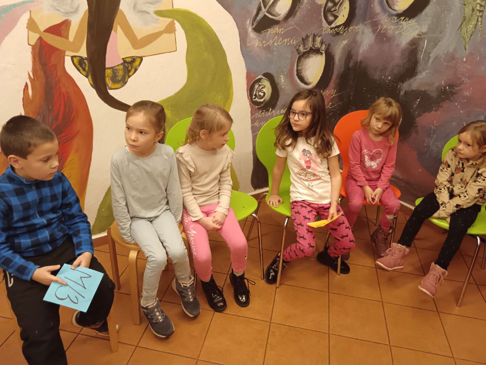 Děti si prohlédly pestrou nabídku knih pro nejmenší a s velkým zaujetím poslouchaly krátkou ukázku z knihy, kterou jim paní knihovnice přečetla. Pro mnohé to byl skutečný zážitek – být obklopený knihami a slyšet příběh vyprávěný přímo mezi nimi.