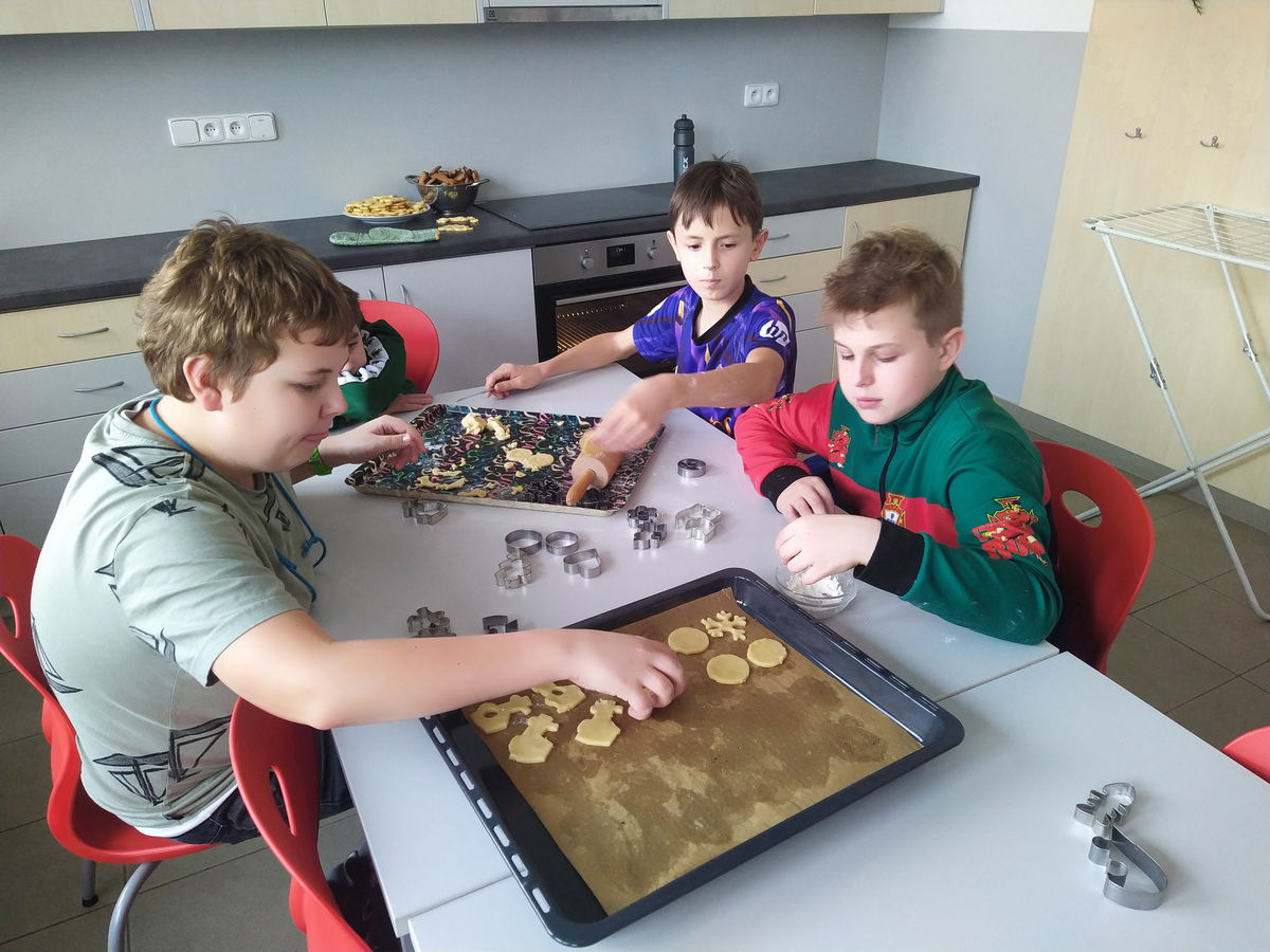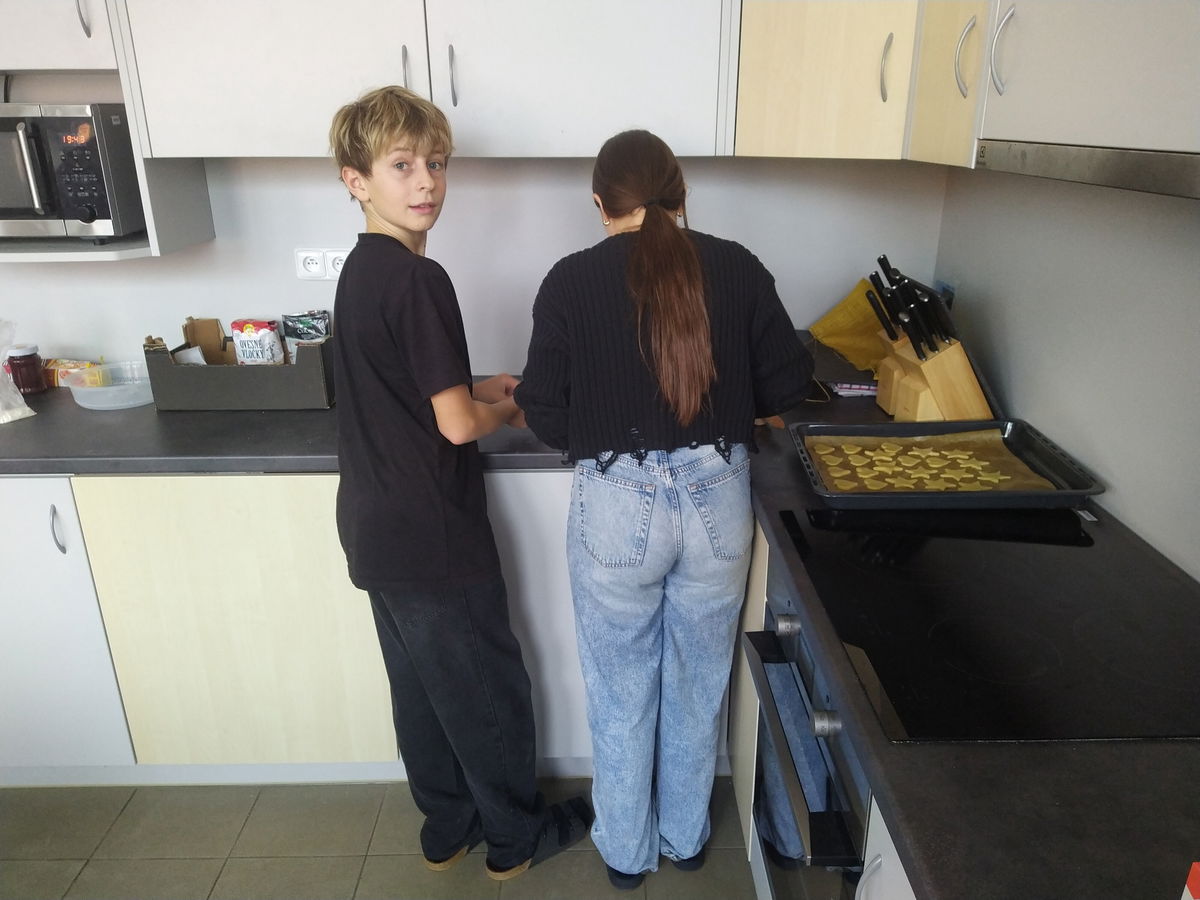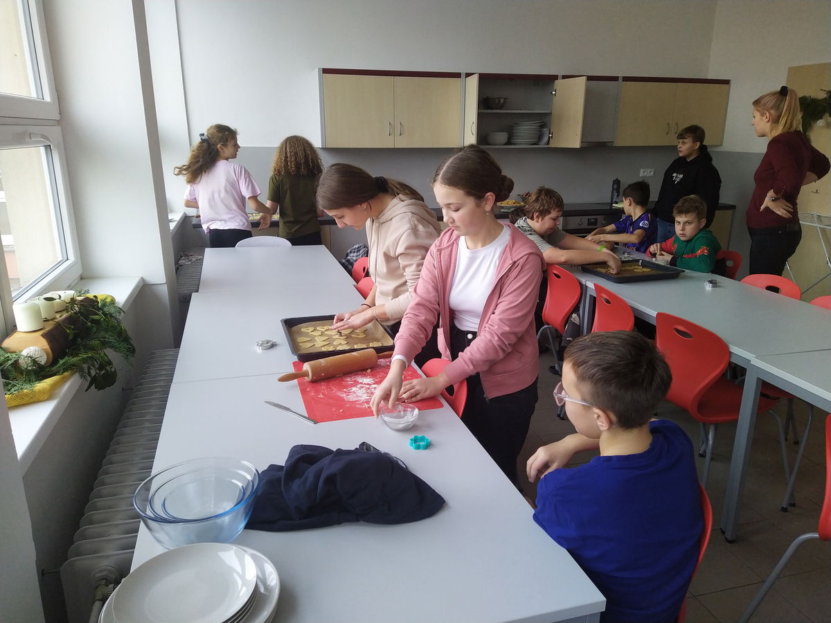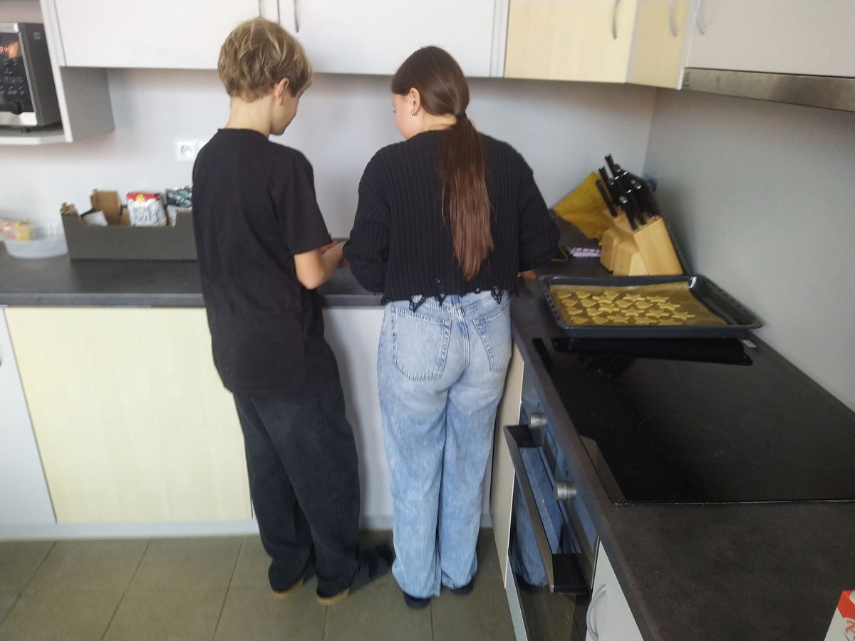Se 7. třídou v rámci pracovních činností navštěvujeme kuchyňku, kde si žáci zkouší základní poznatky o vaření. Vaření může být zábava i způsob, jak se naučit něco nového o potravinách, které jíme každý den. Včera si vyzkoušeli pečení lineckého cukroví.