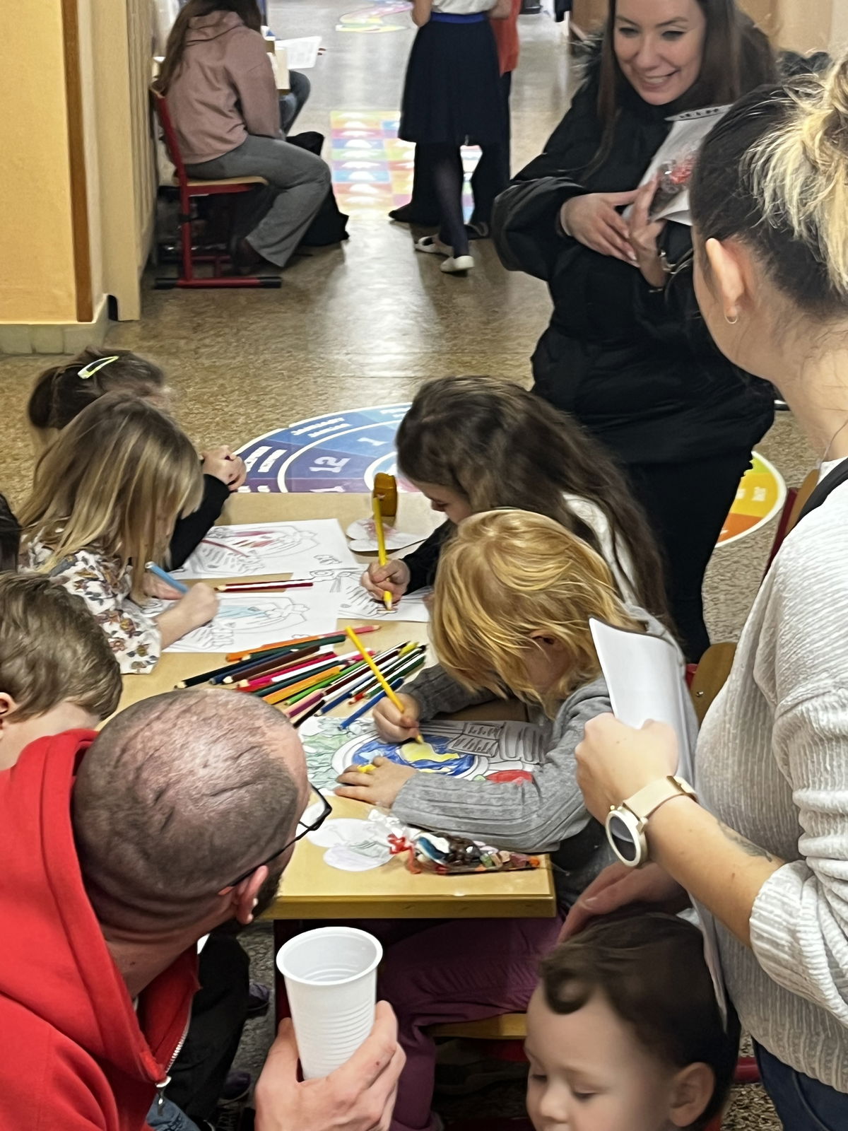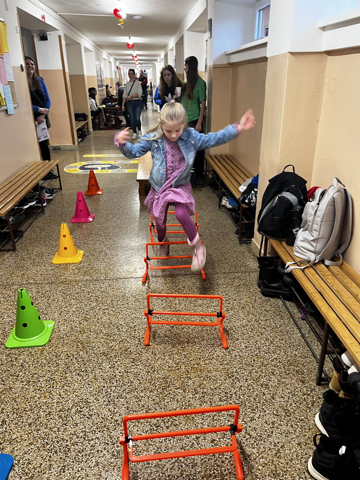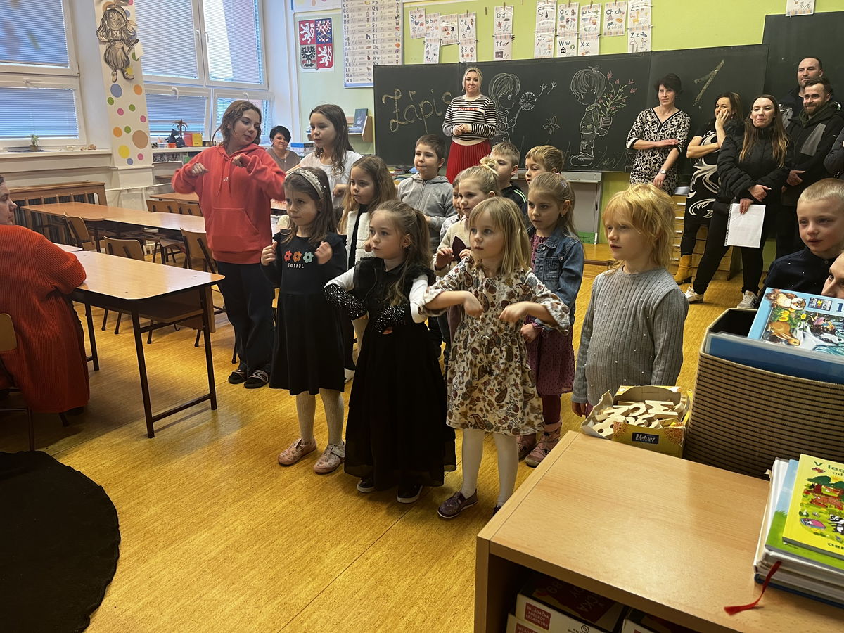 Aby čekání na vstup do tříd rychleji uteklo, připravili si žáci 7. a 8. třídy na chodbě školy zábavná stanoviště s drobnými úkoly. Starší spolužáci se svých rolí zhostili s nadšením a pomáhali vytvářet přátelskou a podporující atmosféru. Pro mnohé předškoláčky to tak byla první zkušenost s budoucími spolužáky z vyšších ročníků.