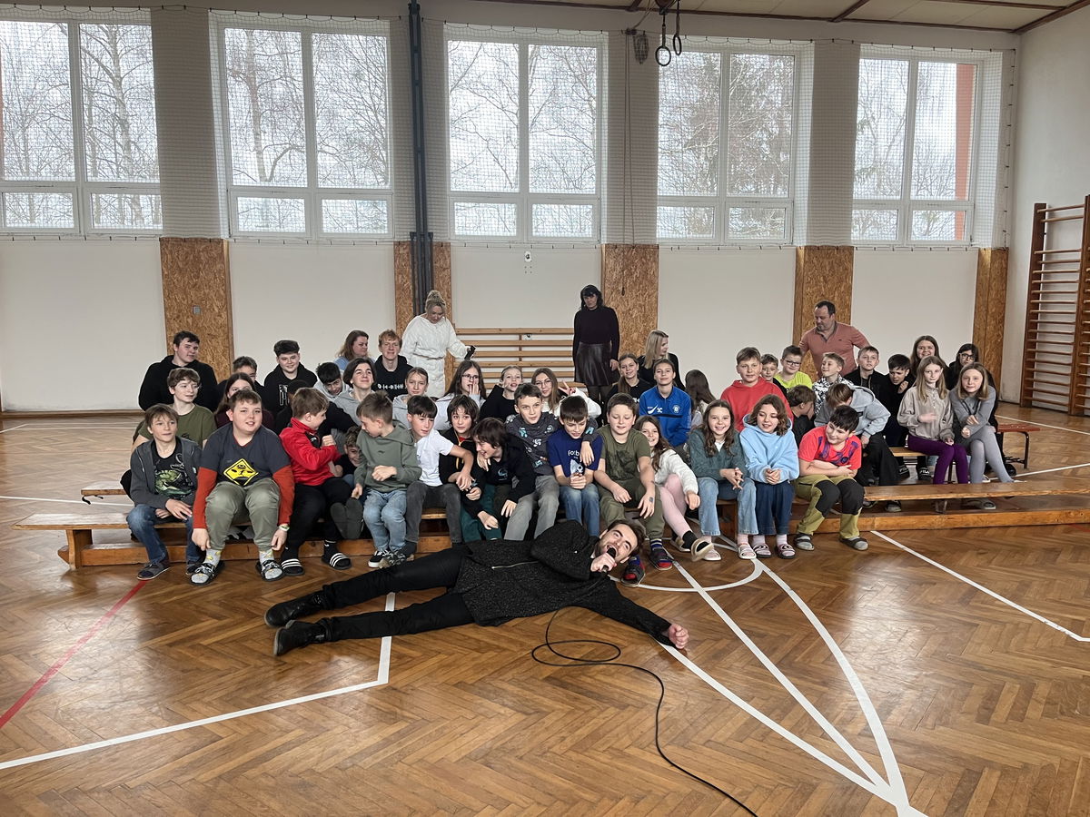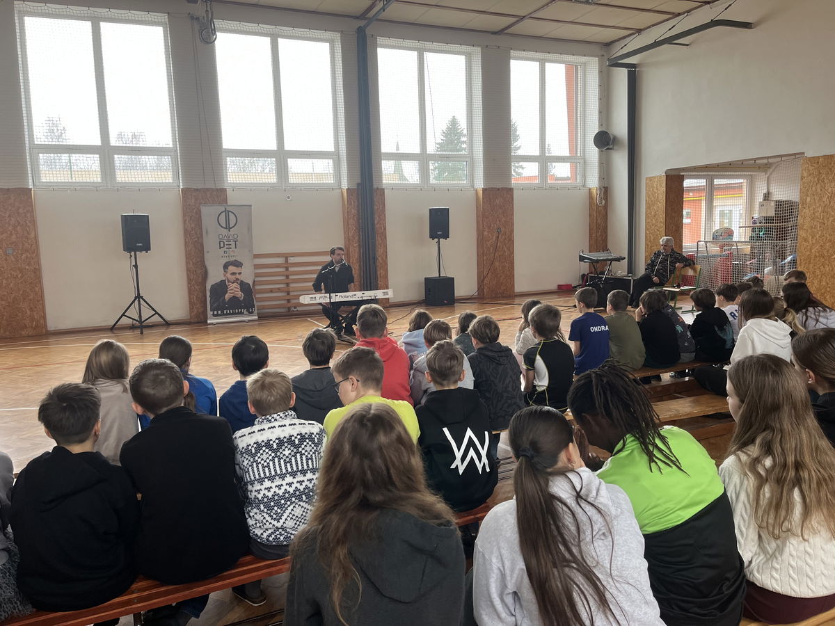 Na naši školu zavítal zpěvák David Pet, který si pro žáky připravil hudební program. Koncertu se zúčastnila celá škola a tělocvična byla plná dobré nálady.
